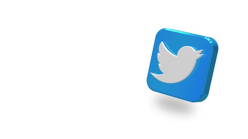 Twitter App Large Size 3D Icon Rotating, Space for Text on Right Side, 3D Rendering, Chroma Key, Luma Matte Selection, Lower Third 3D Icon