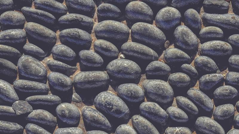 Lot of white masonry cladding pebble texture seamless loop. Stones pattern background. Pro Video