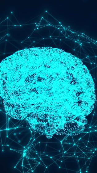 Human brain and plexus structure revolving with skull scan and digits orbiting around Vertical video Pro Video