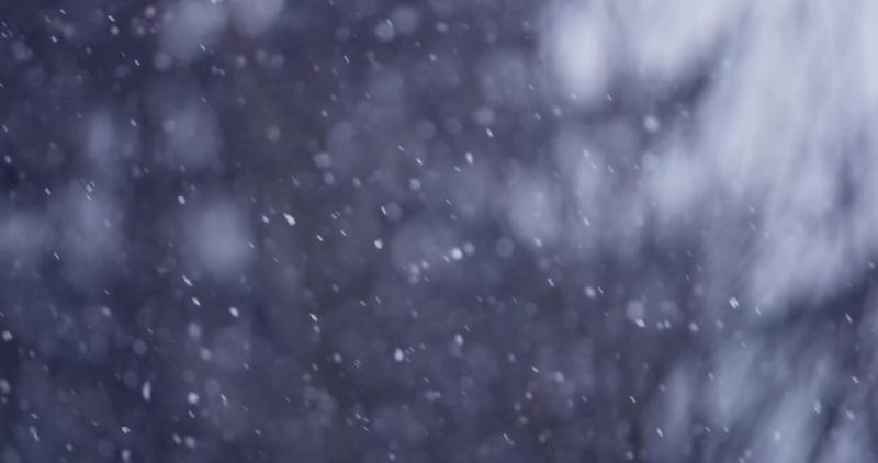 Winter scene with snow falling with diagonal path from left to right on forest background in 4K Free Video