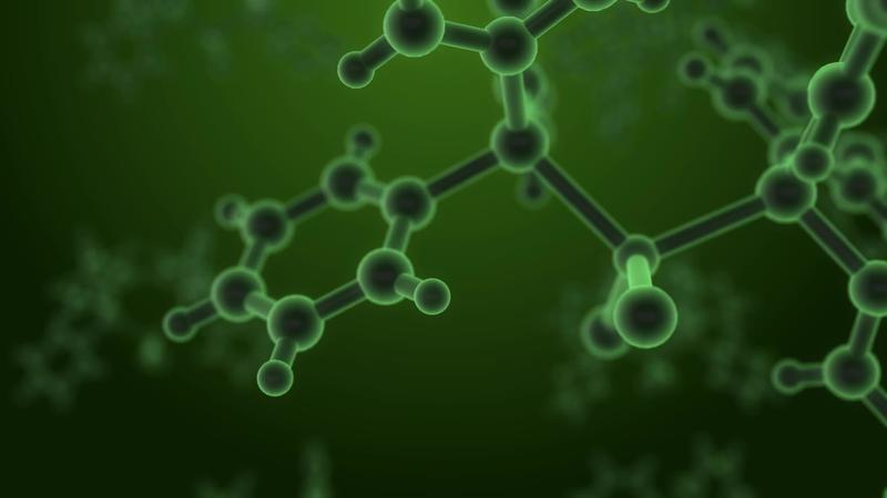Molecule structure under microscope, floating in fluid with green background Free Video