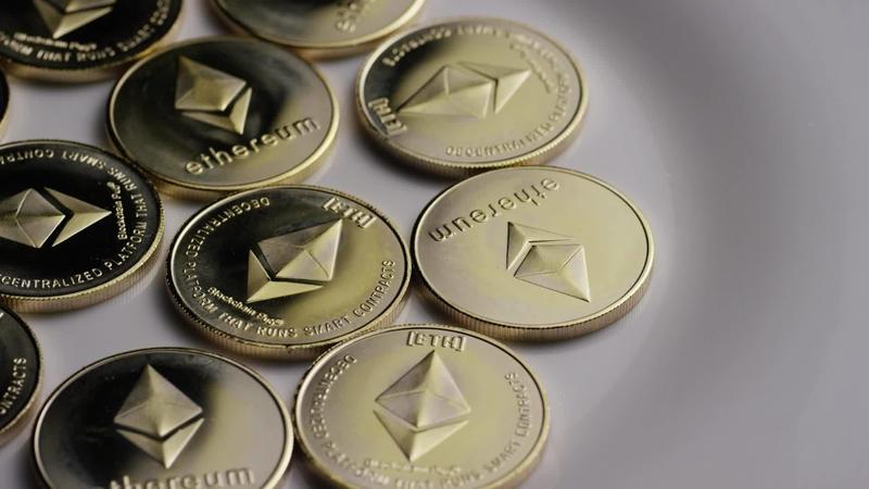 Rotating shot of Ethereum Bitcoins digital cryptocurrency - BITCOIN ETHEREUM 0069 Free Video