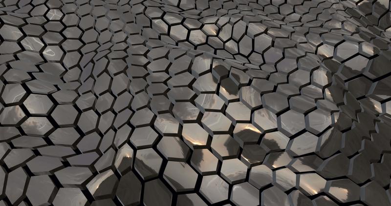 Looped abstract mesh of waves of metallic dark hexagons with reflections. Abstract background. Screensaver, video in high quality 4k Free Video