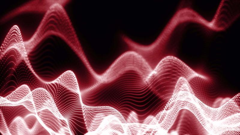Abstract background of futuristic glowing waves from particles of points and lines of energy and magic on a black background. Screensaver Free Video