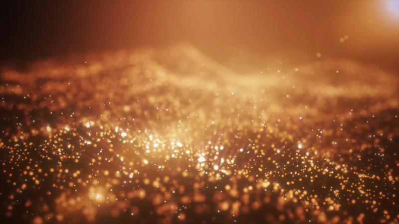 Abstract yellow golden glowing energy waves from particles and dots magical with blur effect on dark background. Abstract background. Video in high quality 4k, motion design Pro Video