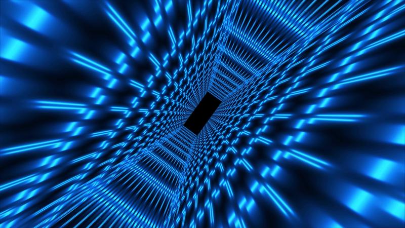 Abstract blue futuristic tunnel square rectangular grid of glowing neon lines digital beautiful magical energy on a dark background. Abstract background. Video in high quality 4k, motion design Free Video