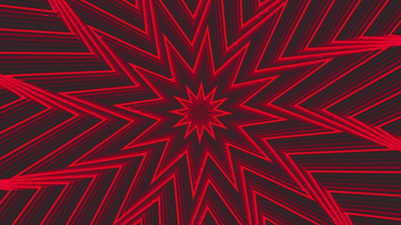 Red spin octagonal star simple flat geometric on dark grey black background loop. Pro Video
