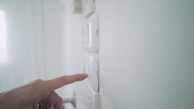 Concept save energy save the world .Men are turn off the switch light when not in use. Turning off energy help for saves energy and reduces global warming. Free Video