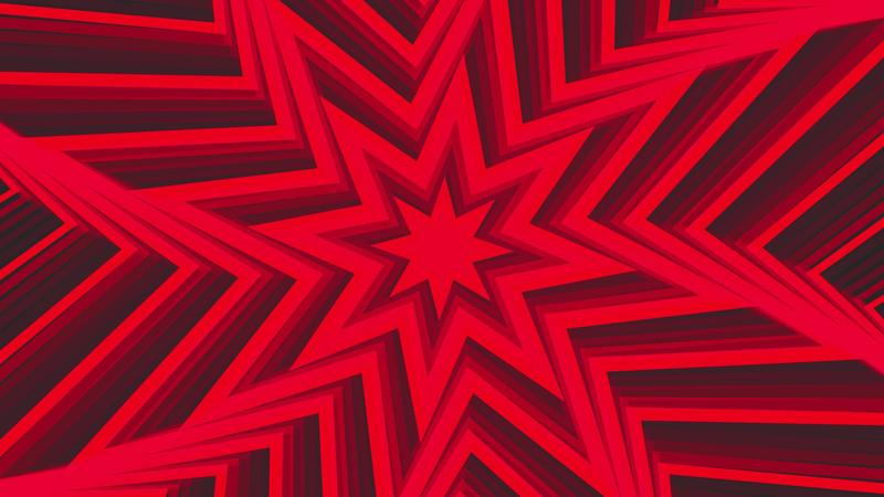 Red bold spin octagonal star simple flat geometric on dark grey black background loop. Pro Video