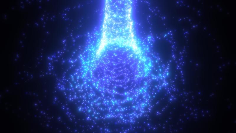 Abstract blue tunnel swirling from particles and dots of glowing bright futuristic hi-tech with a blur effect on a dark background. Abstract background. Video in high quality 4k, motion design Pro Video