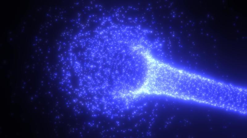 Abstract blue tunnel swirling from particles and dots of glowing bright futuristic hi-tech with a blur effect on a dark background. Abstract background. Video in high quality 4k, motion design Pro Video