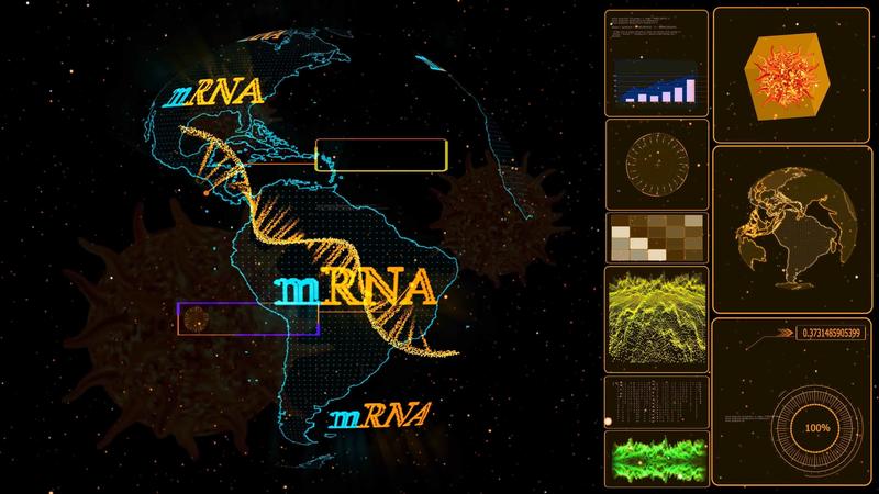 MRNA model to cure simulation on computer digital global with monitor graph research and analysis vaccine to protection COVID 19 mutation Pro Video