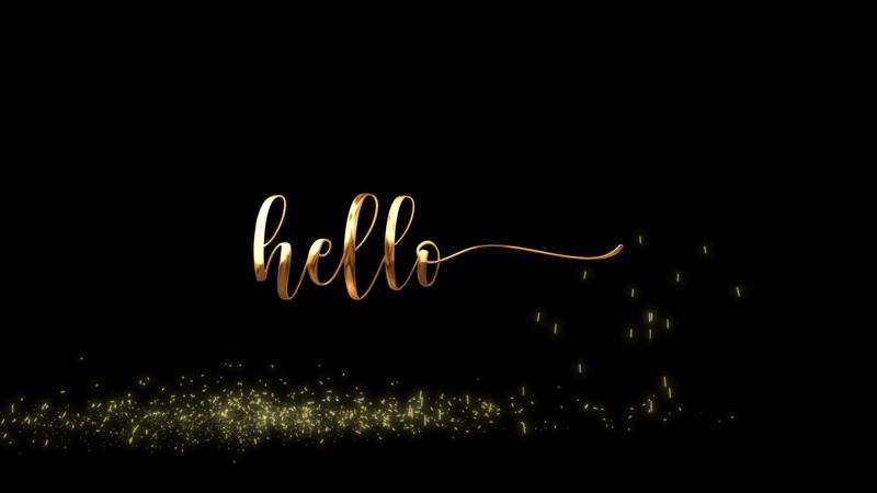 Hello animation with gold handwritten text and falling particles on a sparkling floor on a black and green screen background is perfect for the intro and video overlay. Free Video
