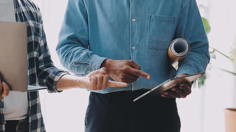 Construction and structure concept of Engineer or architect meeting for project working with partner and engineering tools on model building and blueprint in working site, contract for both companies. Pro Video