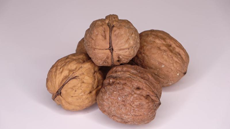Some walnuts slowly spin in a circle on a white background - loop able video. Pro Video