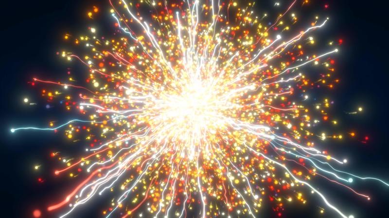 Abstract glowing energy explosion fiery whirlwind fireworks from lines and magic particles abstract background. Video 4k Free Video
