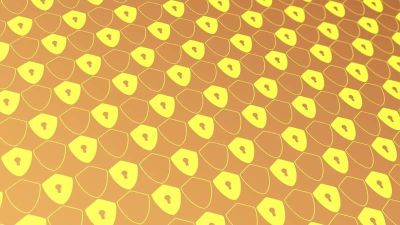 Animated abstract pattern with geometric elements forming a protective shield. yellow gradient background Free Video