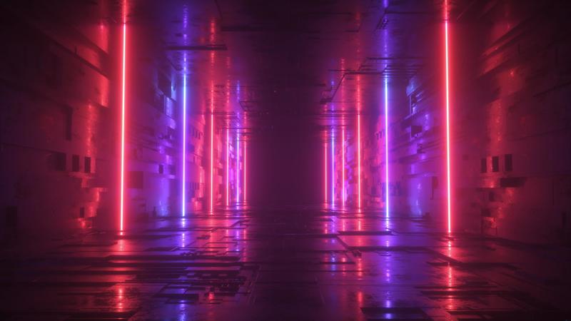 SciFi Tunnel with Neon Light Strings Loop Pro Video