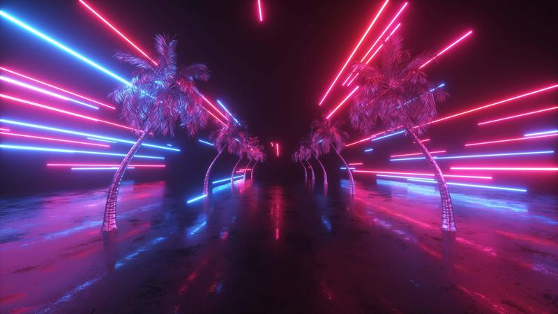 Neon Flying Strings and Palms Loop Pro Video