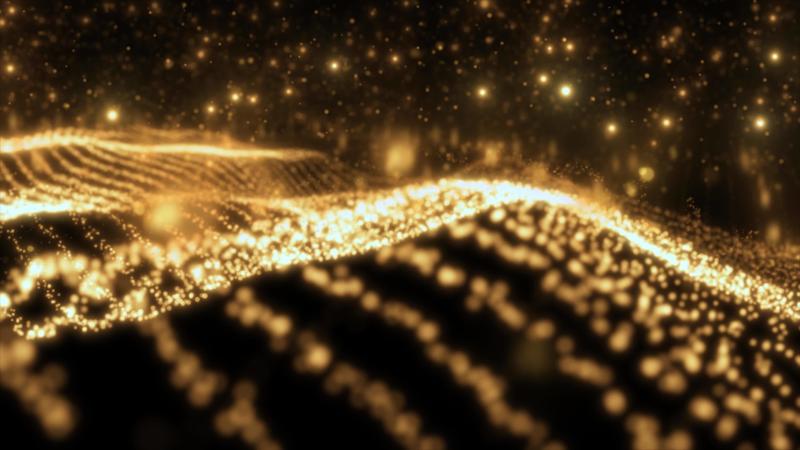 Abstract yellow wave lines from particles and dots of energetic magic with glow effect and blur bokeh abstract background. Video 4k, 60 fps Free Video