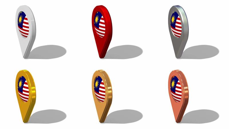 Malaysia Flag 3D Location Icon Seamless Looping Rotation in Different Color, 3D Rendering, Looped Animation, Chroma key, Luma Matte Selection Free Video