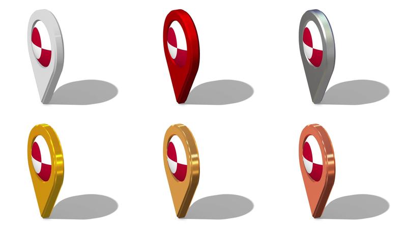 Greenland Flag 3D Location Icon Seamless Looping Rotation in Different Color, 3D Rendering, Looped Animation, Chroma key, Luma Matte Selection Free Video
