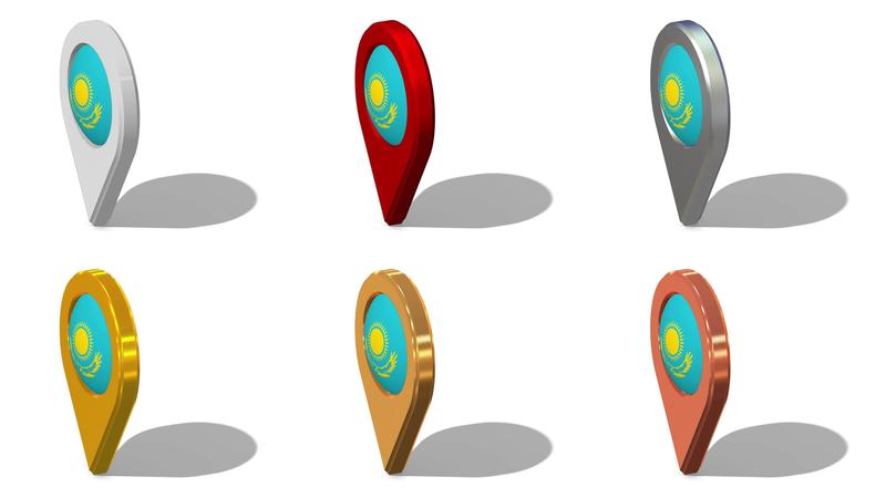 Kazakhstan Flag 3D Location Icon Seamless Looping Rotation in Different Color, 3D Rendering, Looped Animation, Chroma key, Luma Matte Selection Free Video