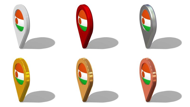 Niger Flag 3D Location Icon Seamless Looping Rotation in Different Color, 3D Rendering, Looped Animation, Chroma key, Luma Matte Selection Free Video