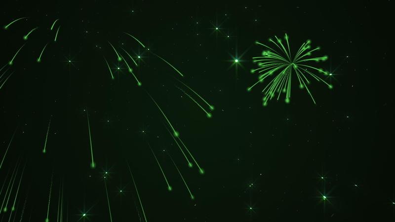 Saint Patrick's Day celebration firework display background with exploding green fireworks and shiny flowing stars and particles. Free Video