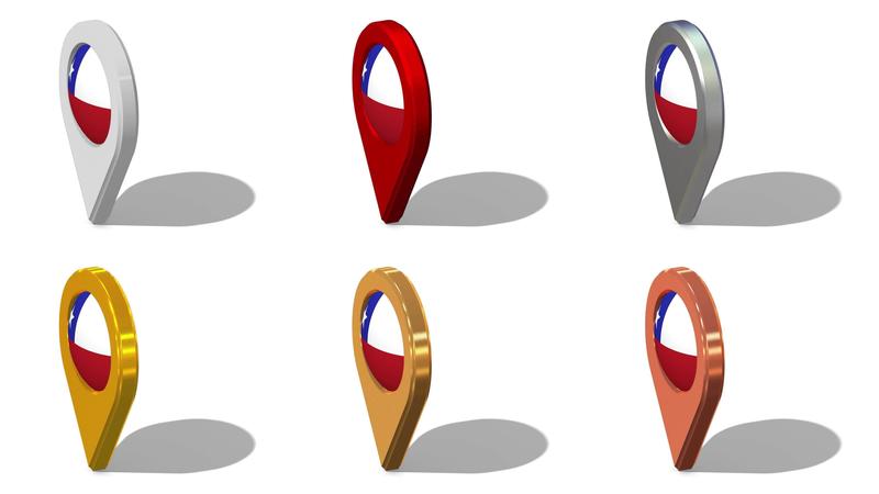 Chile Flag 3D Location Icon Seamless Looping Rotation in Different Color, 3D Rendering, Looped Animation, Chroma key, Luma Matte Selection Free Video