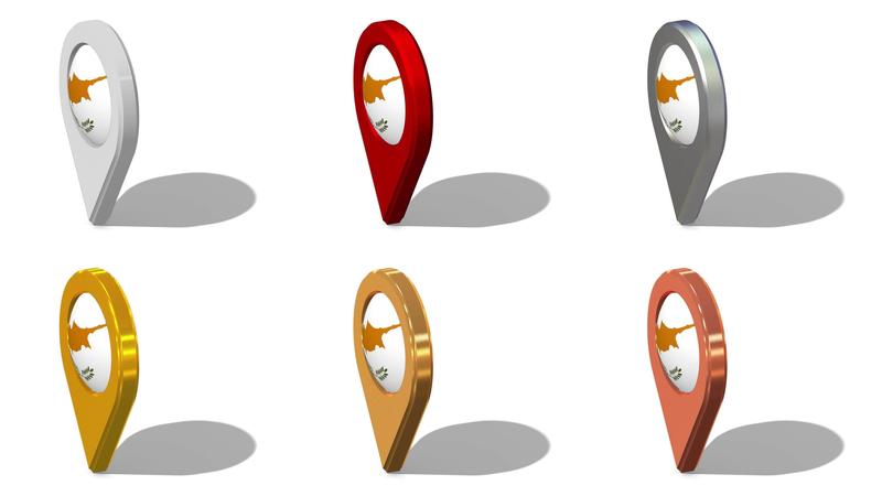 Cyprus Flag 3D Location Icon Seamless Looping Rotation in Different Color, 3D Rendering, Looped Animation, Chroma key, Luma Matte Selection Free Video