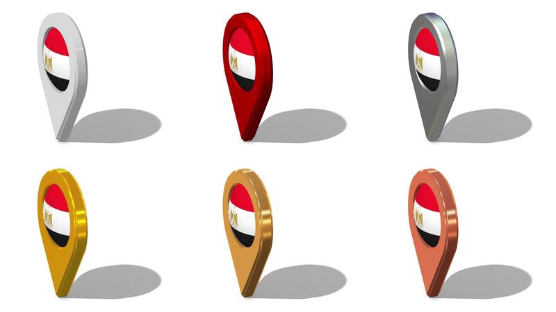 Egypt Flag 3D Location Icon Seamless Looping Rotation in Different Color, 3D Rendering, Looped Animation, Chroma key, Luma Matte Selection Free Video