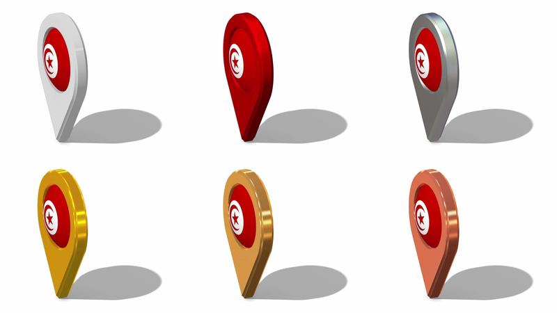 Tunisia Flag 3D Location Icon Seamless Looping Rotation in Different Color, 3D Rendering, Looped Animation, Chroma key, Luma Matte Selection Free Video