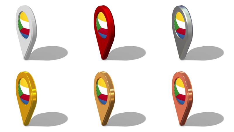 Comoros Flag 3D Location Icon Seamless Looping Rotation in Different Color, 3D Rendering, Looped Animation, Chroma key, Luma Matte Selection Free Video