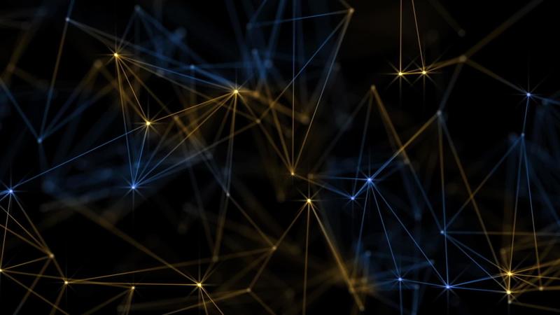 Abstract plexus tech background with glowing blue and gold connecting lines and dots or nodes. Digital data network connections concept. This modern technology video is full HD and a seamless loop. Free Video