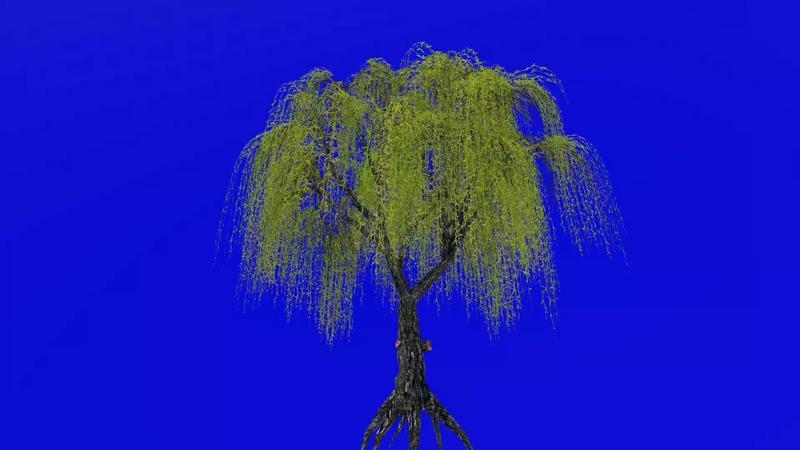Tree animation loop - willow tree, weeping willow, babylon willow - salix babylonica - green screen chroma key - v2 - 4a Free Video