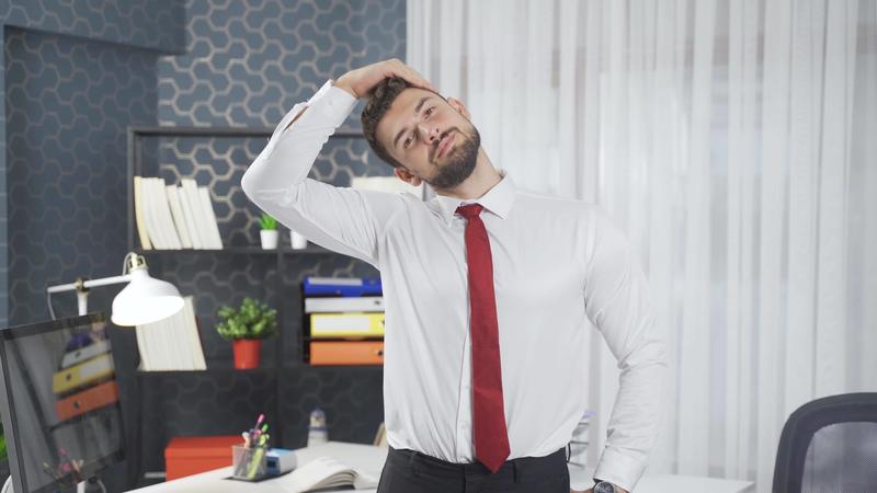 Exercises that can be done in the office. Stretching exercises. Office worker showing exercises that can be done in the office. Pro Video