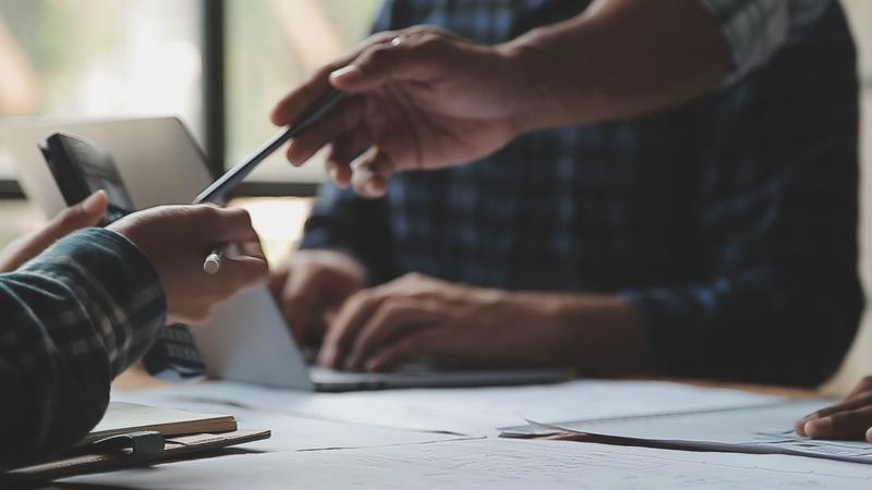 Construction and structure concept of Engineer or architect meeting for project working with partner and engineering tools on model building and blueprint in working site, contract for both companies. Free Video