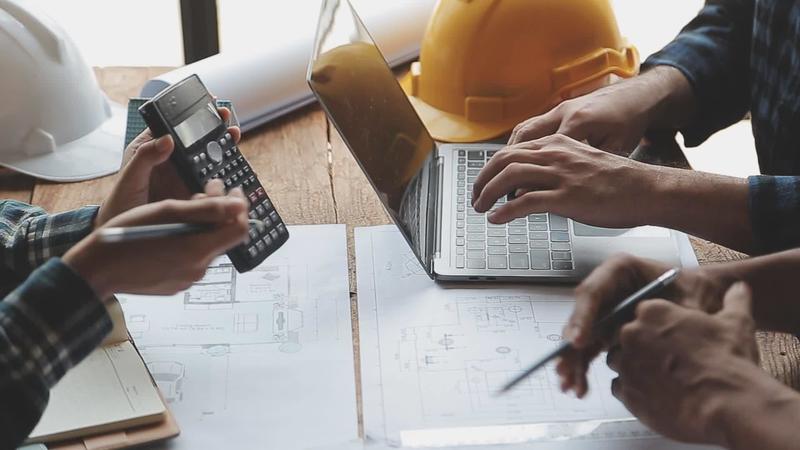 Construction and structure concept of Engineer or architect meeting for project working with partner and engineering tools on model building and blueprint in working site, contract for both companies. Free Video