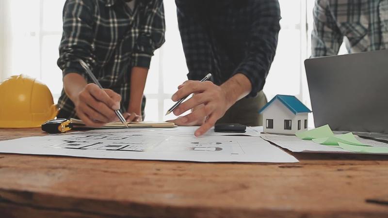 Construction and structure concept of Engineer or architect meeting for project working with partner and engineering tools on model building and blueprint in working site, contract for both companies. Free Video