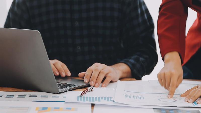 Teamwork of asian business people discussing and calculating with calculator on evaluation data in conference room. with the growth and pointing to the chart graph financial account. Free Video