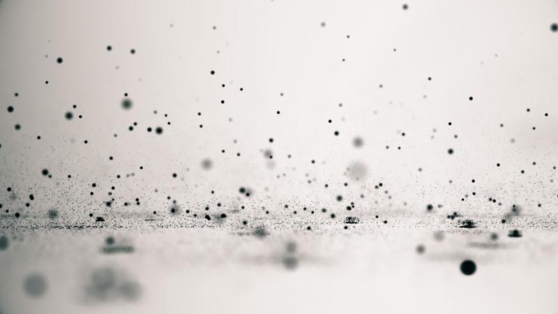 Dark sphere particles falling from the sky, bouncing and exploding when they hit the ground. Looping, full hd motion background. Pro Video