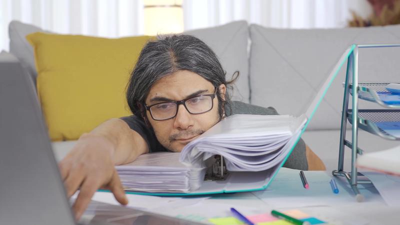 The lazy man gets bored and falls asleep. Lazy man gets bored while working and falls asleep. Pro Video