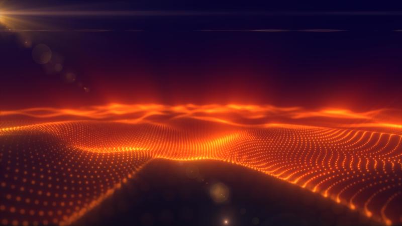 Abstract orange energy surface with magic waves of particles and points with an endation background of blur and glow with an abstract background, video 4K, 60 FPS Pro Video