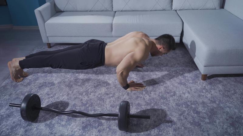 The young, dynamic and fit athlete is both clapping and navigating normally. A young, dynamic athlete, half of whom clap while the other half do push-ups normally. Pro Video