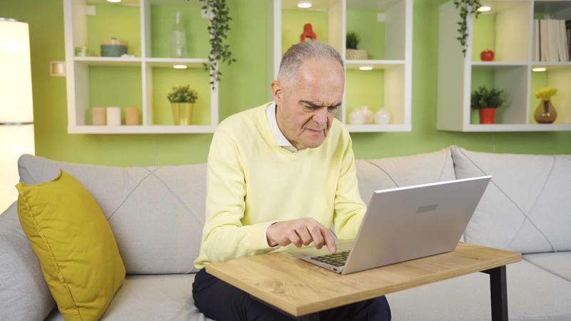 The old man who does not understand technology does not use a laptop. The old man, who has trouble using a laptop at home, is far from technology and does not understand anything. Pro Video