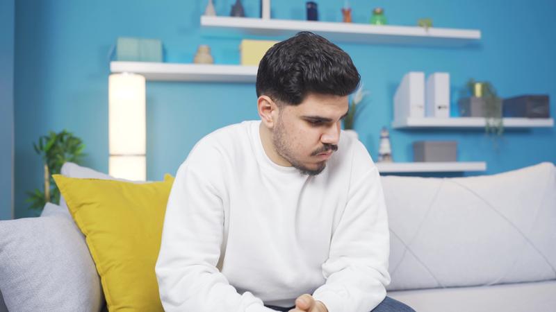 Young man who doesn't solve his problem. The young man has a problem. He thinks but can't figure it out. Pro Video