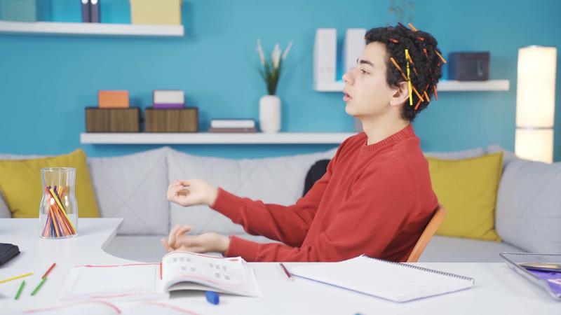 The lazy and fun boy who doesn't study is having fun by himself. The lazy boy who doesn't work when he should be studying starts to have fun on his own. Pro Video