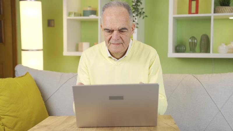 At home, the old man does not use a laptop, he does his work on the Internet, he has difficulties. The old man who uses the laptop to do his work at home cannot use the laptop and understand it. Pro Video