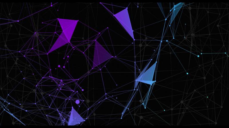 Plexus of abstract violet geometrical lines with moving triangles and dots. Loop animations Pro Video